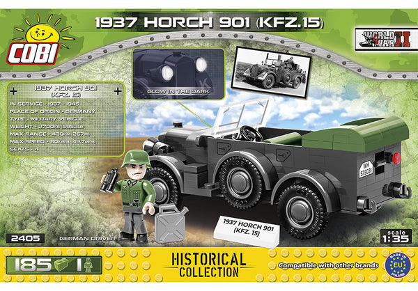 1937 Horch 901 KFZ.15 voertuigCOBI World War II Historical Collection Beschrijving (Later meer info) Specificaties Aantal onderdelen: 185 Compatibel met andere toonaangevende merken bouwblokken, zoals Lego Leeftijd: vanaf 8 jaar Materiaal:...