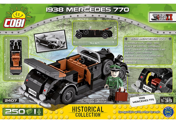 1938 Mercedes 770 voertuigCOBI World War 2 Historical Collection Beschrijving De Duitse 1938 Mercedes 770 dienstauto. Specificaties Aantal onderdelen: 250 Compatibel met andere toonaangevende merken bouwblokken, zoals Lego Leeftijd: vanaf 7 jaar Materiaal:...