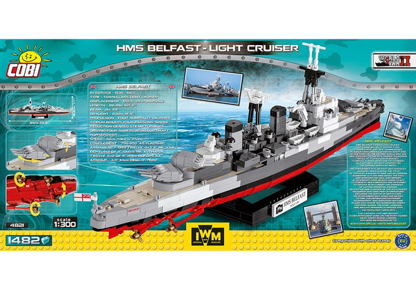 HMS Belfast lichte kruiserCOBI World War II Historical Collection Beschrijving De HMS Belfast was een Britse lichte kruiser uit de Tweede Wereldoorlog. (later meer) Specificaties Aantal onderdelen: 1482 Compatibel met andere toonaangevende merken...