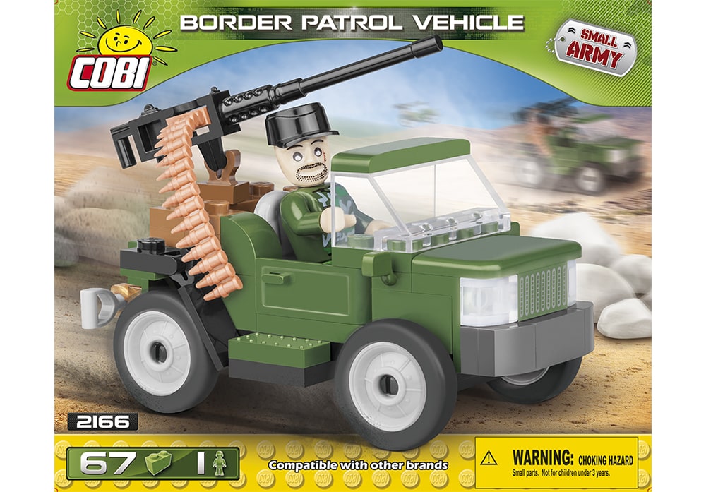 Voorkant 3d box van de Cobi 2166 bouwset Small Army grens patrouille voertuig
