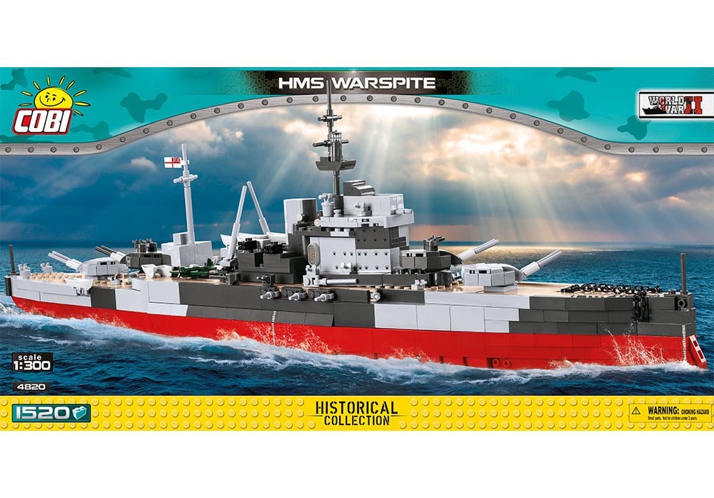 Het Britse slagschip HMS Warspite. (Later meer info)